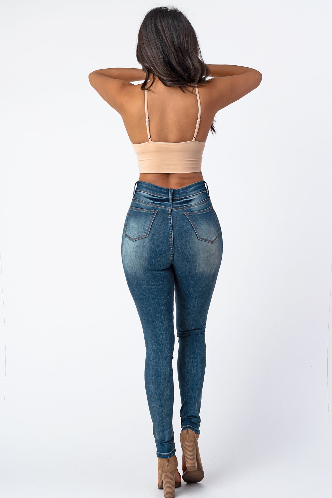 Destroyed Pants With Chain Front Md Denim Jeans Large Size.