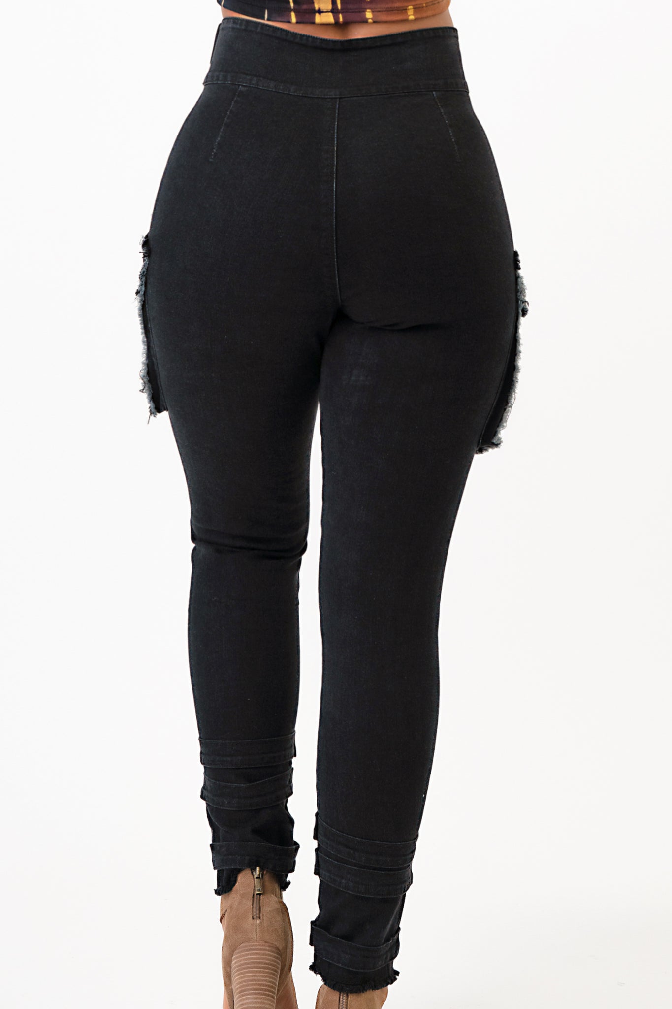 Sleeve Front Tie Black Denim Cargo Pants Jeans Small Size .