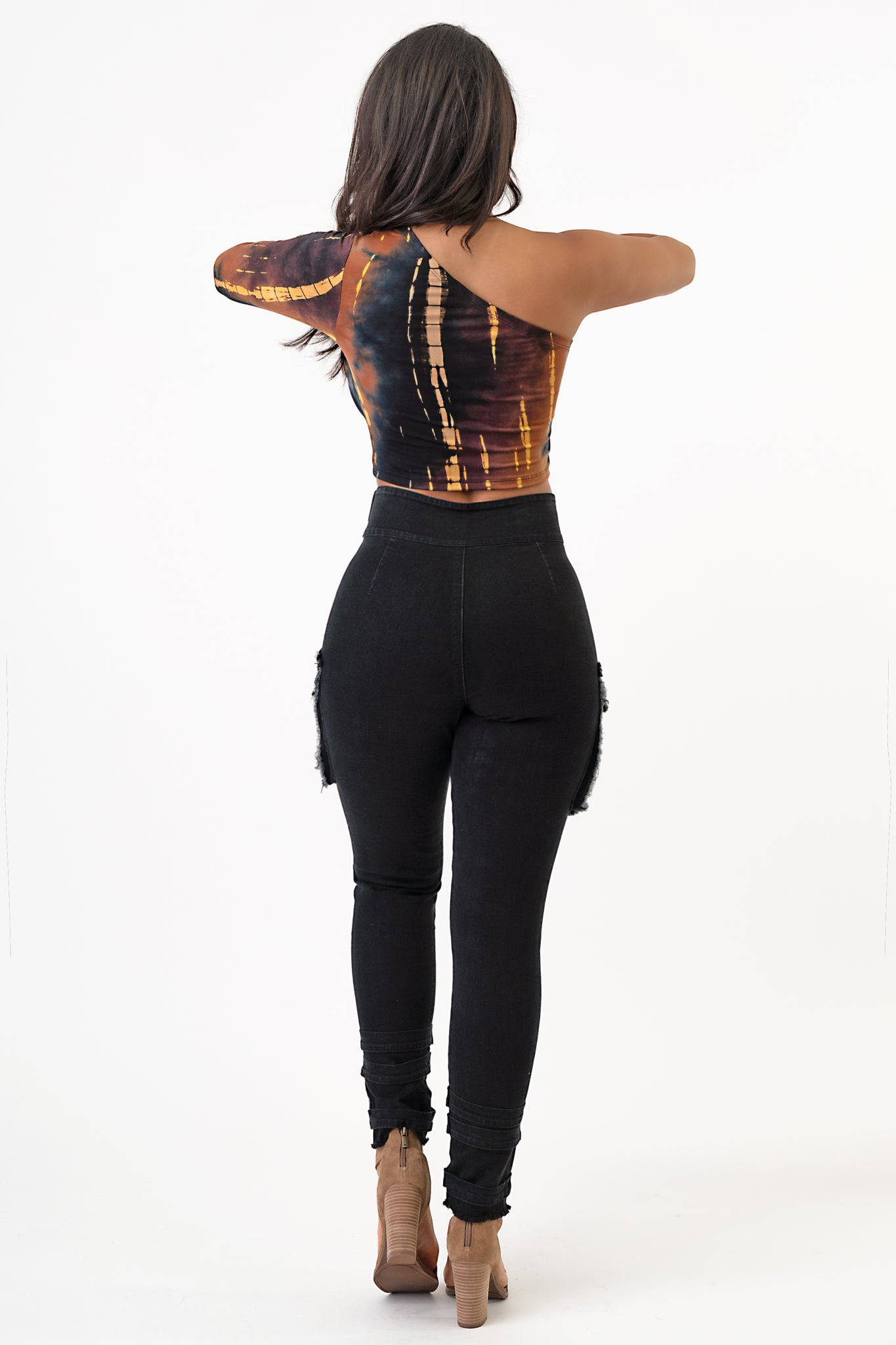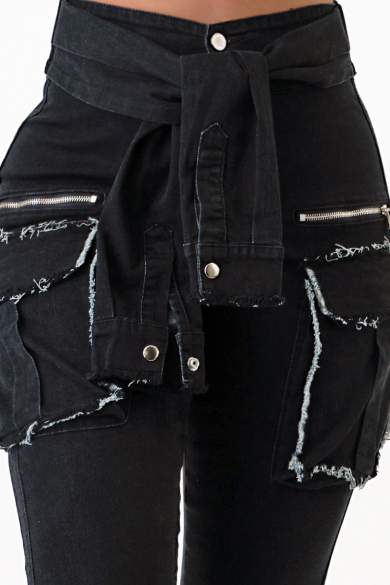 Sleeve Front Tie Denim Cargo Pants Jeans .