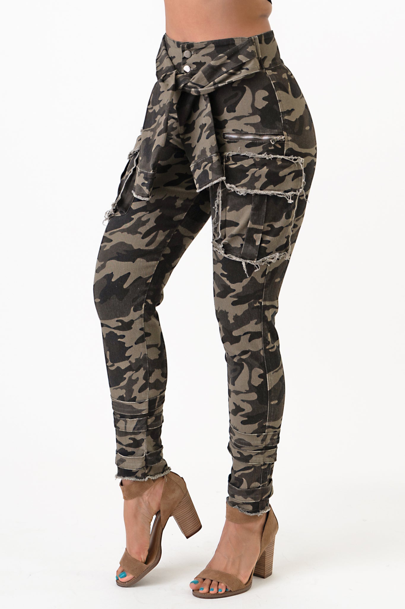 Sleeve Front Tie Camouflage Cargo Pants Medium Size .