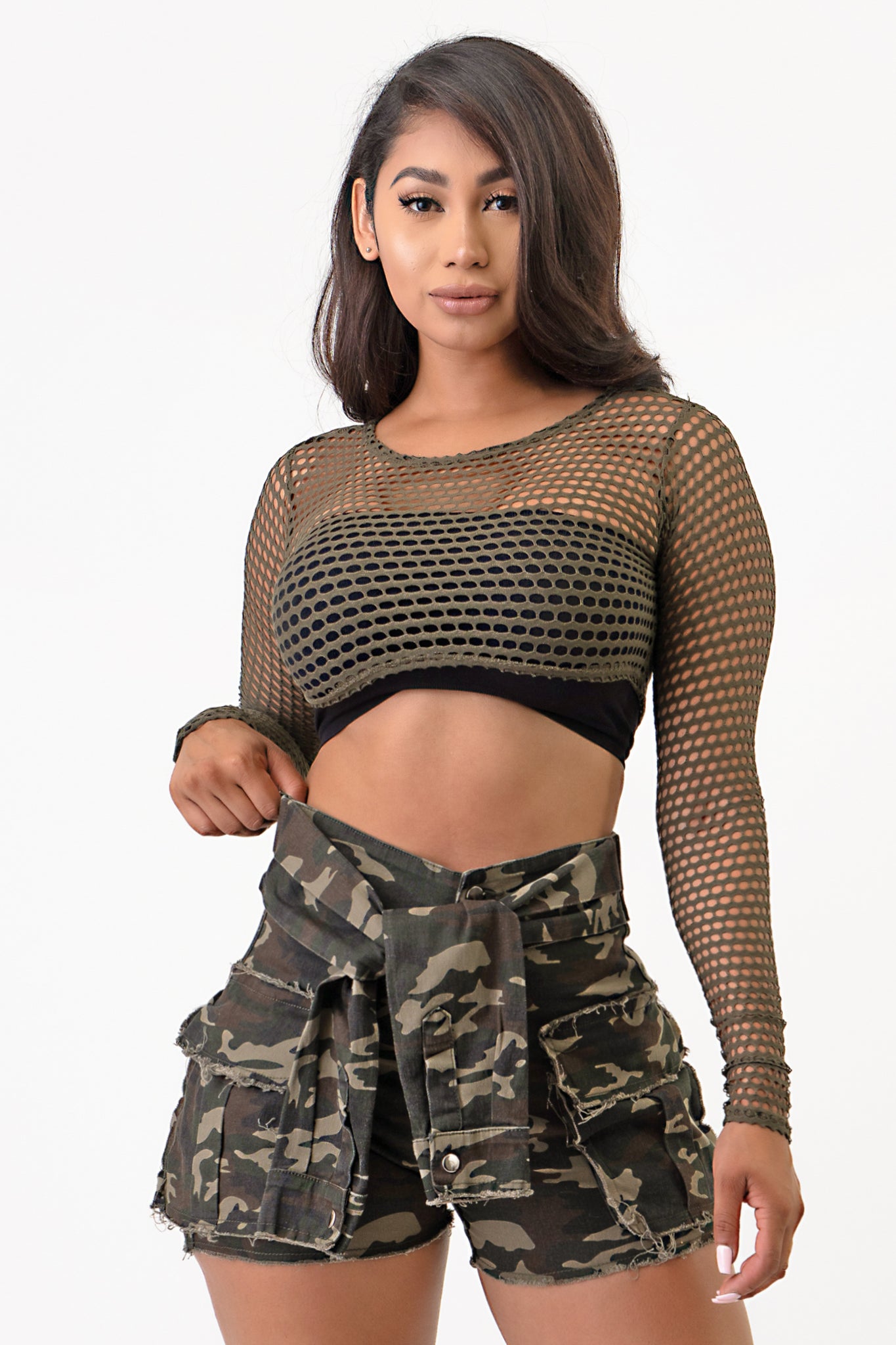 Sleeve Front Tie Camouflage Cargo Shorts Large Size